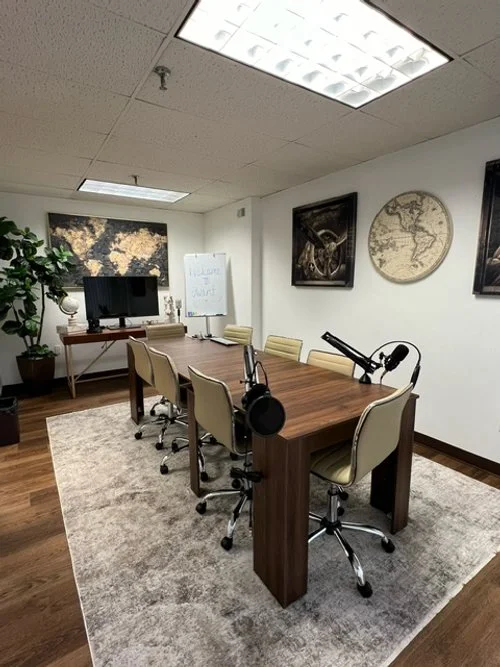 Designed to accommodate up to 8 people, the conference/meeting room offers a versatile environment suitable for a myriad of purposes. State-of-the-art video cameras and a conference speakerphone stand ready to facilitate seamless video conferences, while a large-screen smart TV monitor equipped with a wireless keyboard and mouse simplifies presentations and enhances communication. From podcasts to videography, photography, and traditional meetings, the room provides a dynamic backdrop for a wide range of creative endeavors in which creators and collaborators alike can bring their visions to life with unparalleled clarity and professionalism.